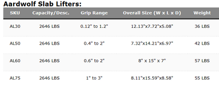 The patented Aardwolf Slab Lifter is an accessory for lifting and moving slab-form loads.