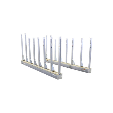 The Aardwolf bundle racks consist of a pair of galvanized steel rails 3m long, together with rectangular galvanized steel tube posts. The rectangular post can be positioned anywhere along with the rack. All posts are manufactured from rectangular tube steel with a minimum yield strength of 345Mpa, with 5mm wall thickness, ensuring safety for the vertical storage of slab bundles.